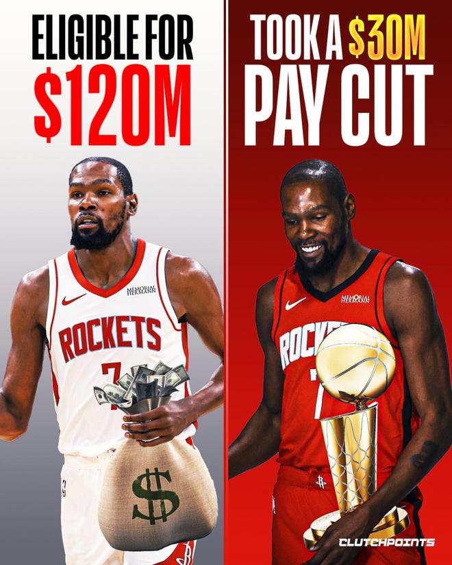 杜兰特本赛季进入了合同的最后一年,毫无疑问,他在职业生涯中已经赚了很多钱。尽管9000万美元的续约合同比他本可以拿到的金额要少,但自从同意被交易到火箭后,他就一直知道会是这样,因为火箭是一支年轻的球队,他们希望优先考虑未来的灵活性。